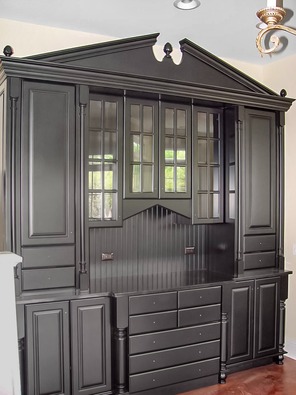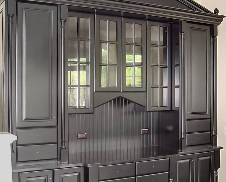 We love Modern, Traditional, Neo-classic, Bauhaus or Shabby-Chic details. Challenge us and let us fabricate your dream kitchen and cabinetry. Details make all the difference in a poorly executed design or a wonderfully detailed cabinet. Check out this Traditional Hutch, with the pediment we recently completed.